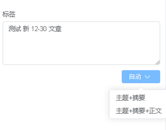 A[自动生成标签] --> |下拉选择| C[主题+摘要] --> D[生成文章标签]