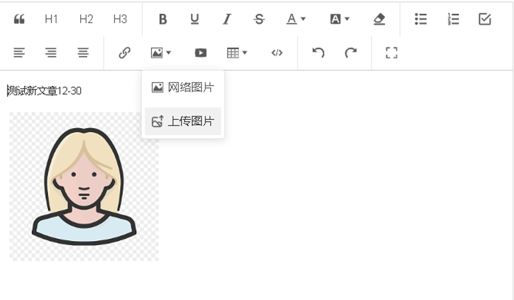 A[上传图片] --> B[从本地选择图片] --> C{上传到服务器} --> |上传成功| D[在文章内容页显示图片]
